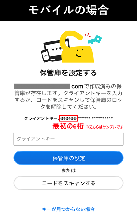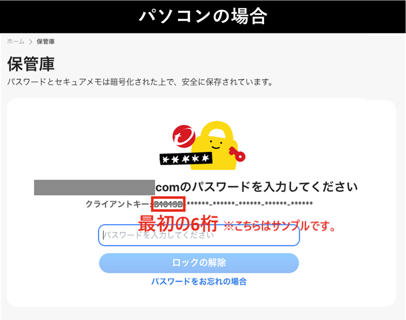 クライアントキーは、保管庫を有効化する際に自動生成される36桁の英数字です。お客様ご自身で管理いただく重要な情報であり、トレンドマイクロでは保持しておりません。